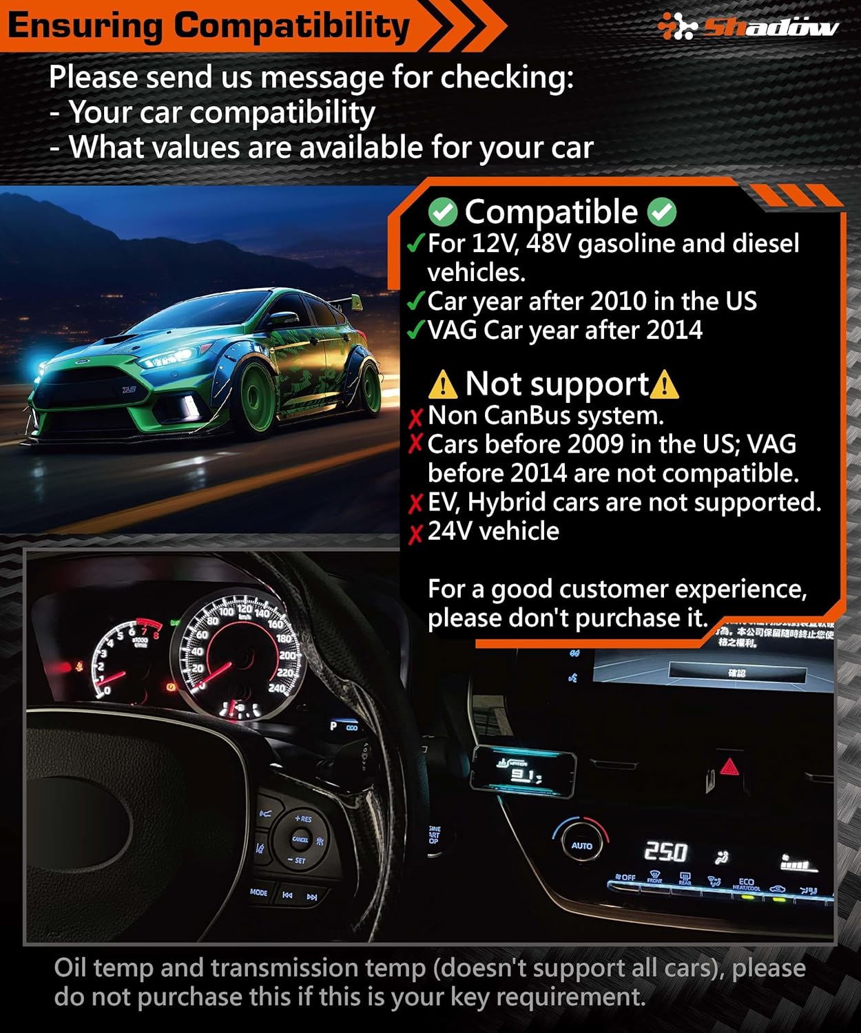 - For a detailed list of supported vehicle models, please refer to the FAQ section.